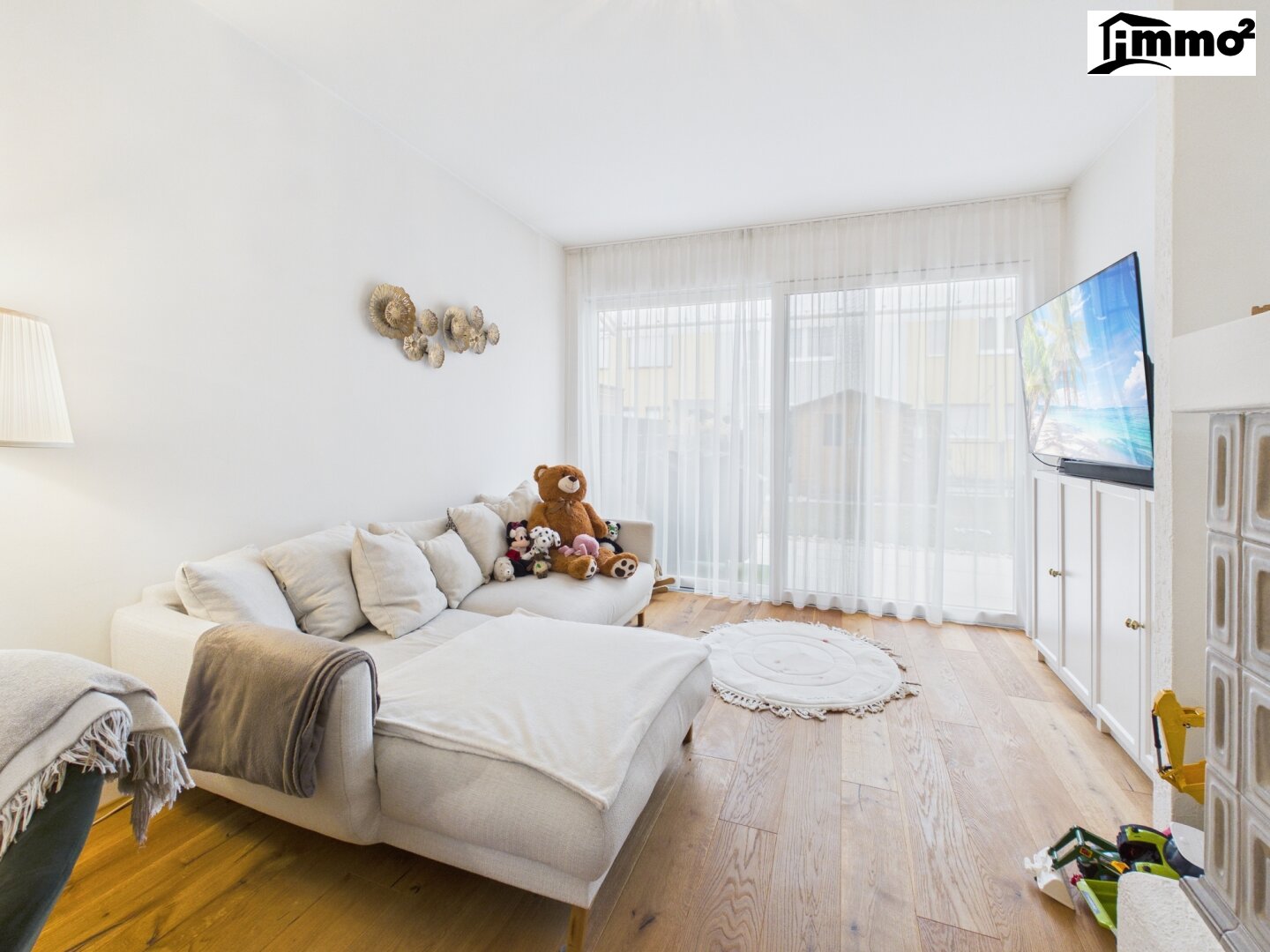 Die hochwertige DAN-Küche fügt sich harmonisch in das offene Wohnkonzept ein und bietet sowohl funktionale als auch ästhetische Qualität. Der direkte Zugang zur großzügigen Terrasse erweitert den Wohnbereich nach außen und schafft eine perfekte Verbindung zwischen Innen- und Außenraum.